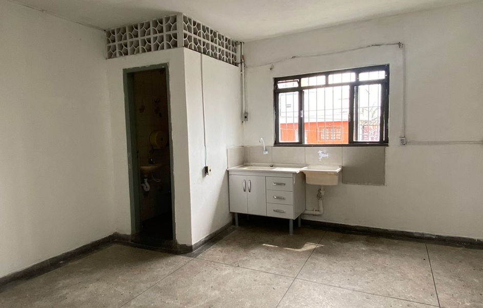 Casa constituída por 1 quarto, cozinha, banheiro e área de serviço compartilhada na cozinha.